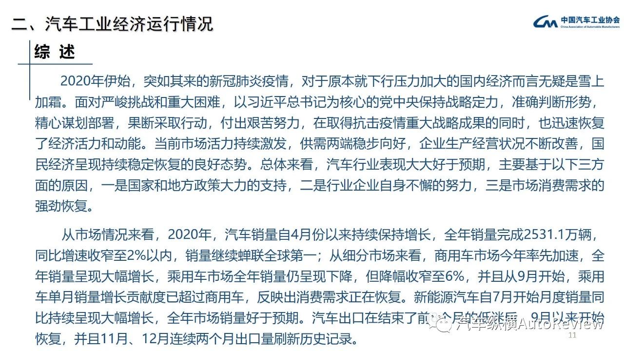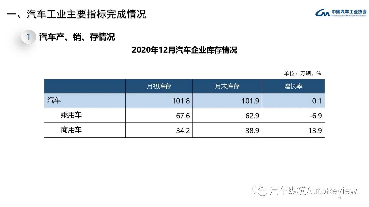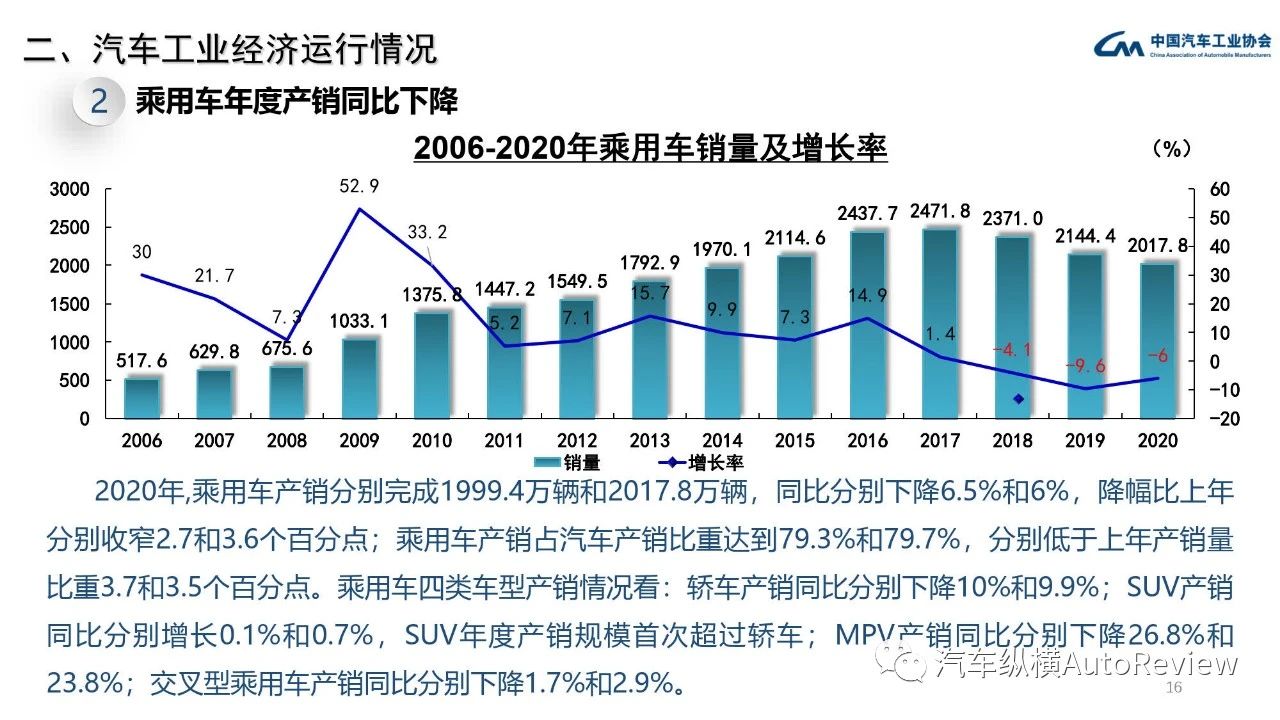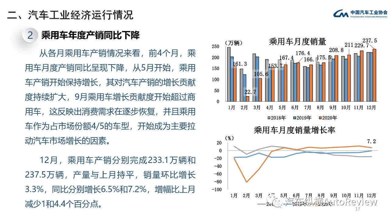 ➁ 乘用车:2020年12月销量237.5万辆,增长7.2%;2020年全年累计销量2017.8万辆,下降6.0%
