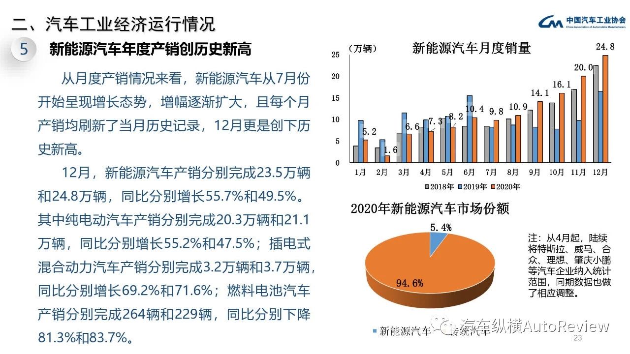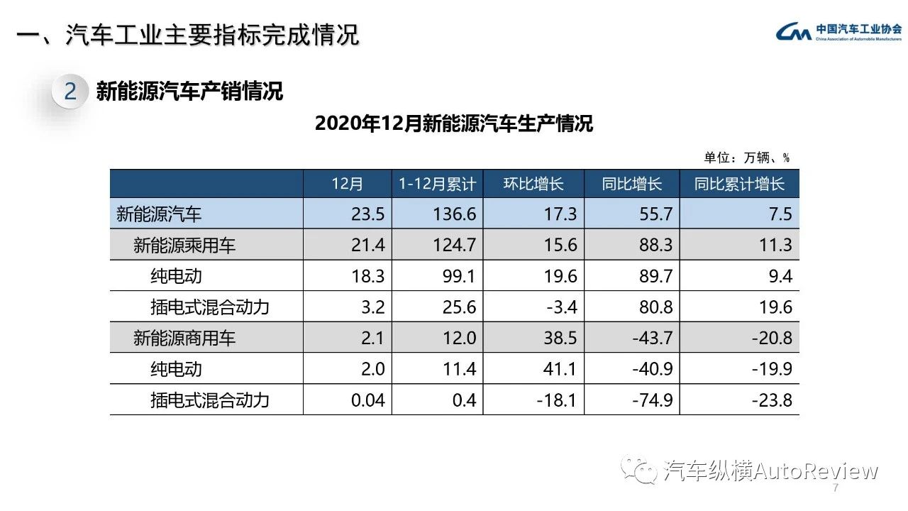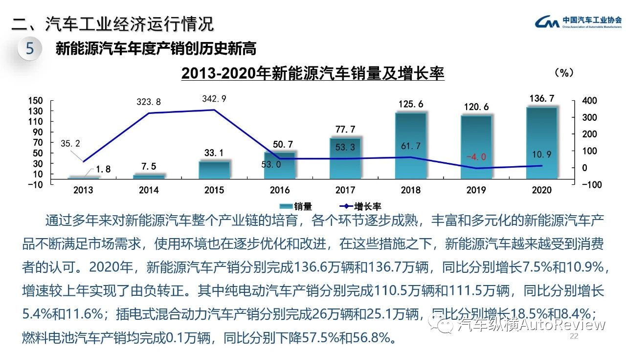 ➃ 新能源汽车:2020年12月销量24.8万辆,增长49.5%;2020年全年累计销量136.7万辆,增长10.9%